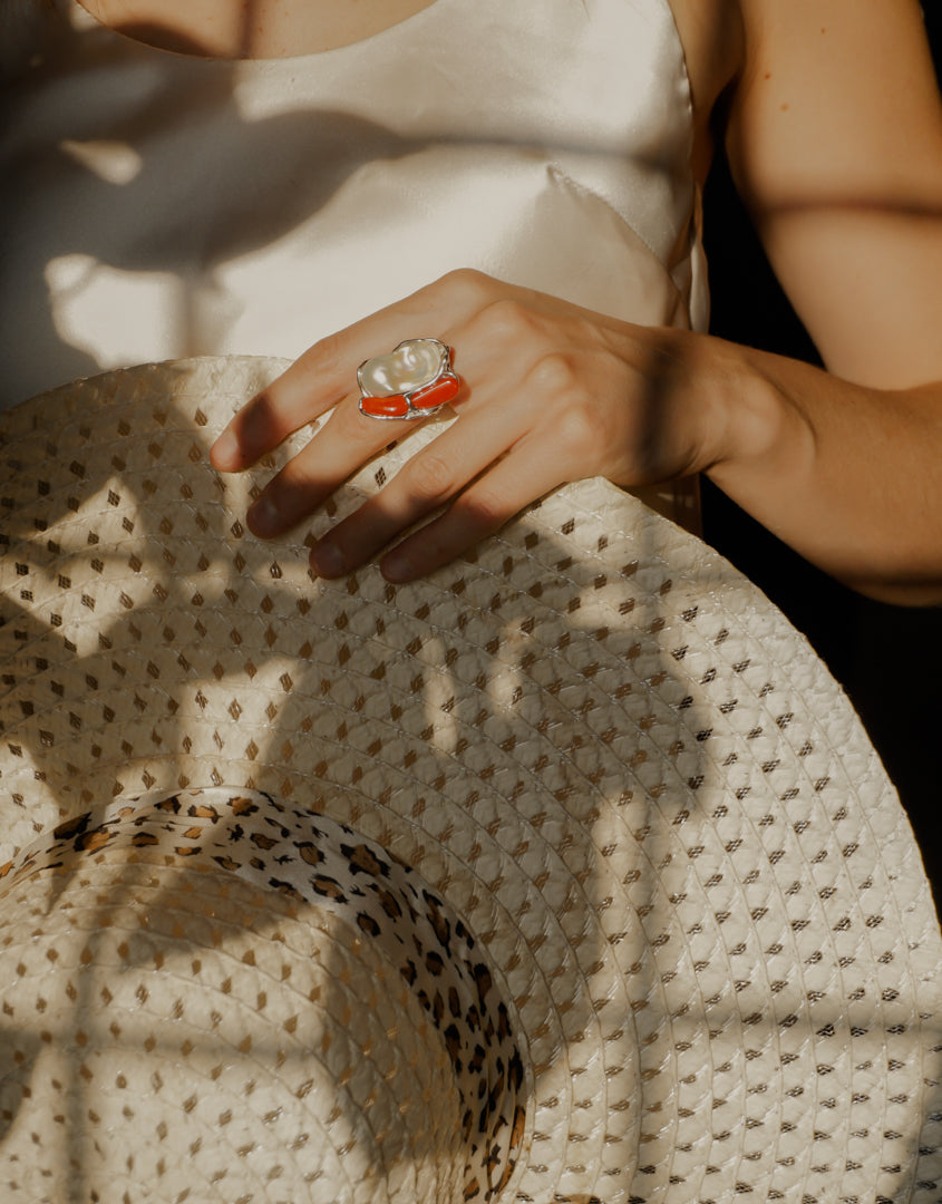 Anello con corallo e perla